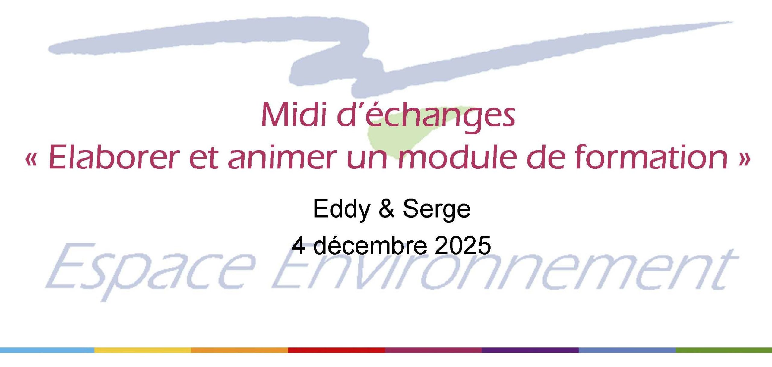 Pour l’équipe d’Espace Environnement, la capitalisation des compétences est un enjeu majeur qui s’inscrit pleinement dans le Plan de Formation de l’association. C’est à cette fin que des « midis d’échanges » sont régulièrement organisés. Les « midis » sont des temps d’échange structurés, préparés par l’équipe, qui ont, notamment, pour but d’enrichir l’expertise collective et d’identifier des référents, en interne.